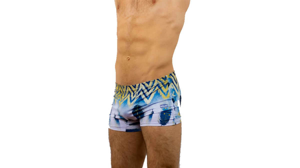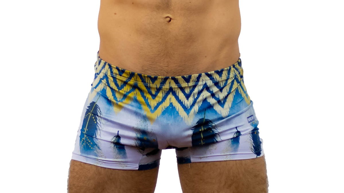 Estampado: blanco y celeste con plumas azules