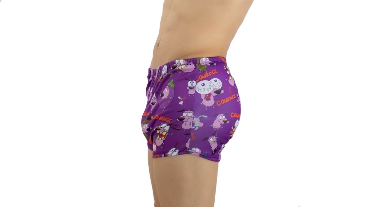 Estampado: violeta con figuras de Corraje el perro cobarde